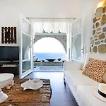 Hay una cocina completa con hervidor eléctrico, nevera y también horno, así como instalaciones para comer en la habitación, como servicio de tetera/cafetera. Los huéspedes también pueden llegar a la villa en coche desde el aeropuerto Nacional de Míconos en 10 minutos.